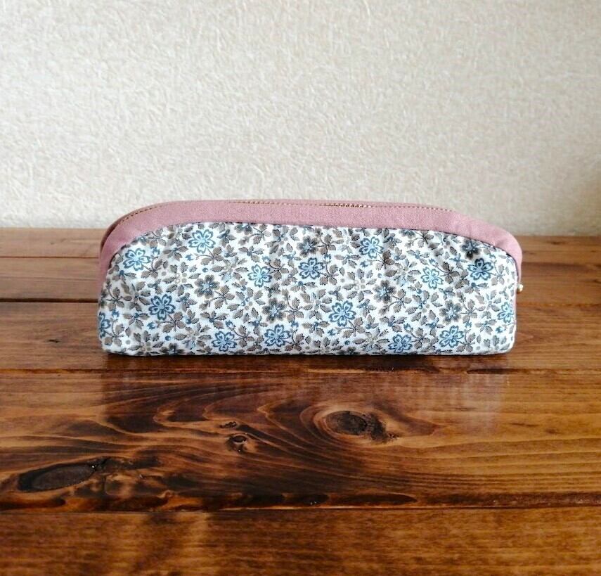 内布とパイピングは、国産シーチング生地くすみピンク色を使用。
