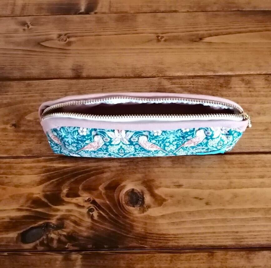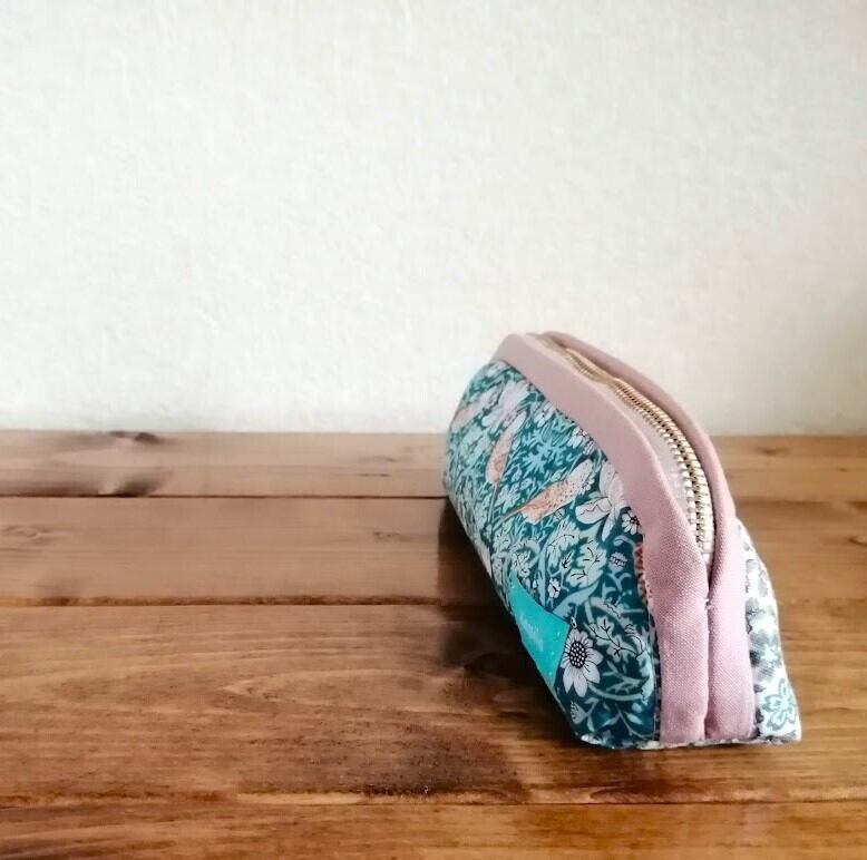 Liberty Bicolor Slim Pouch <StrawberryThief> Pattern, Green x Dull Pink