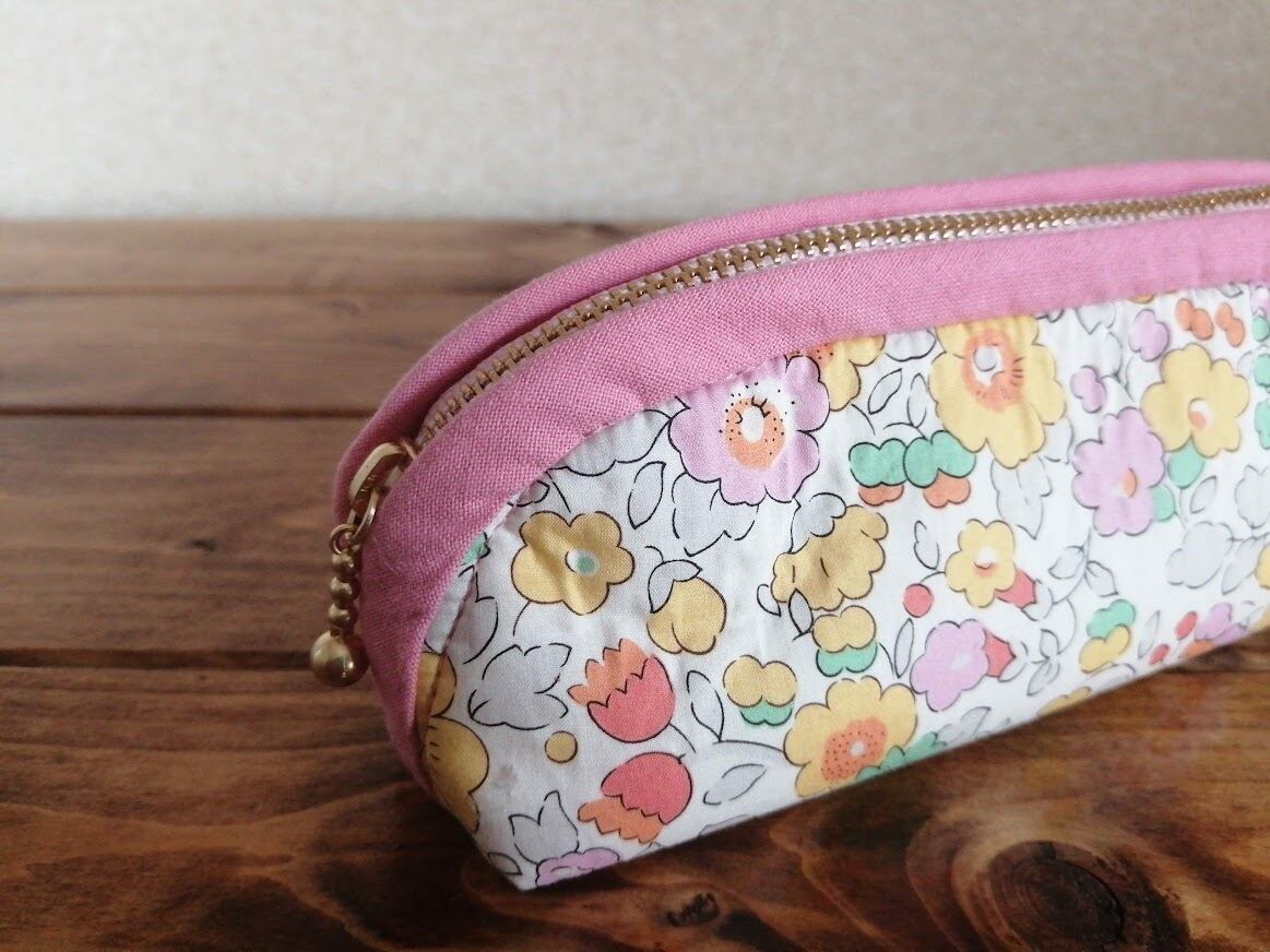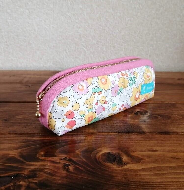 リバティ キルト・スリムポーチ<Betsy>(ベッツィー)黄色系×チャイニーズピンク