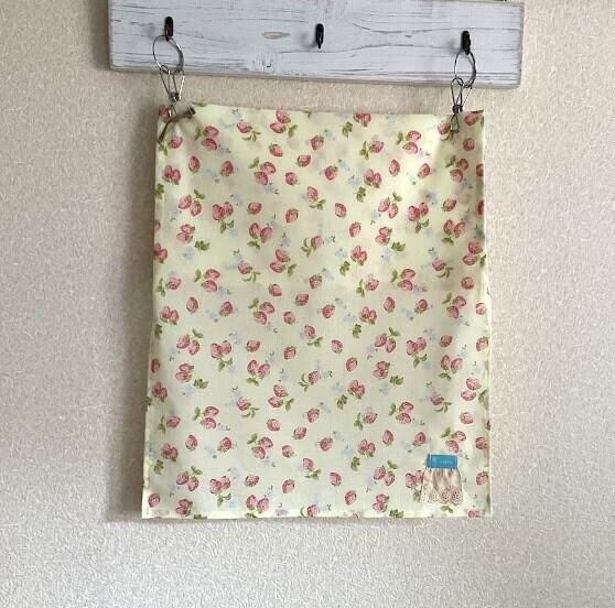 ストロベリープリントが可愛い!洗濯して繰り返し使えるのでエコにも◎。